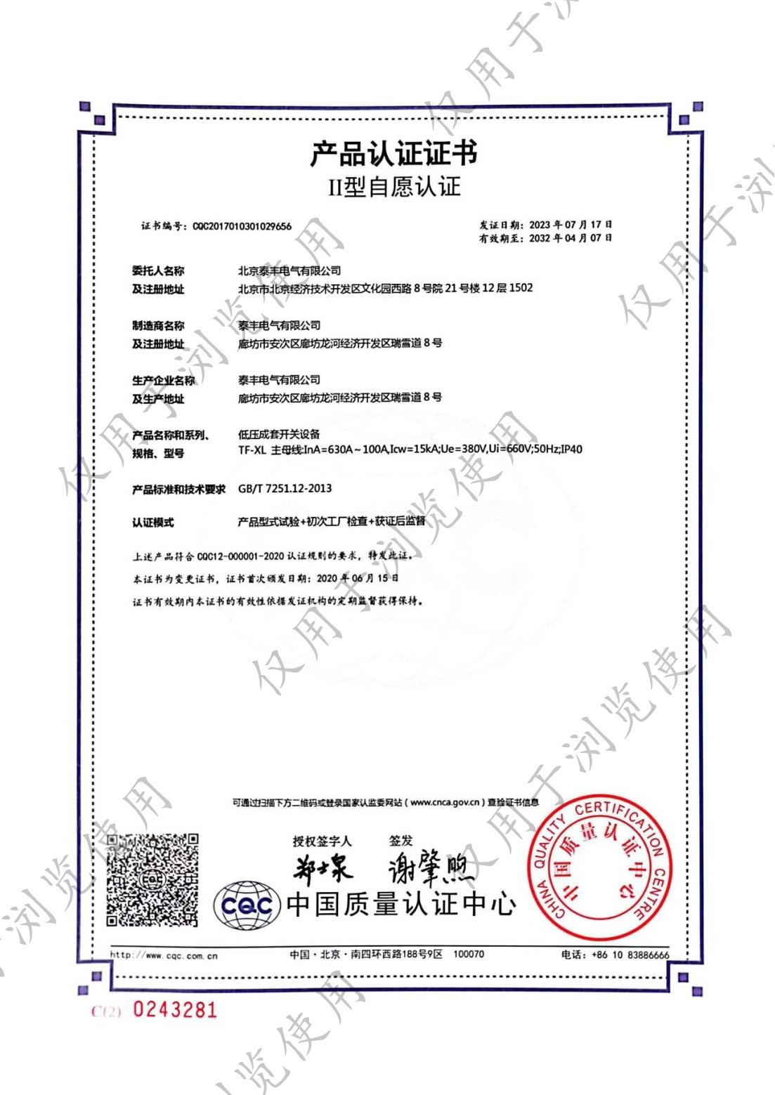 北京泰豐電氣有限公司-低壓成套TF-XL-630A-100A