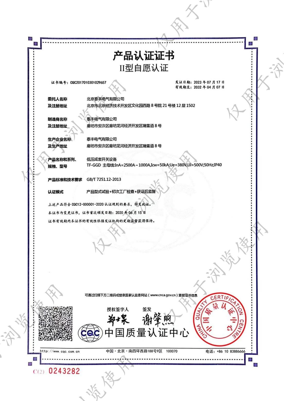北京泰豐電氣有限公司-低壓成套TF-GGD-InA2500A-1000A