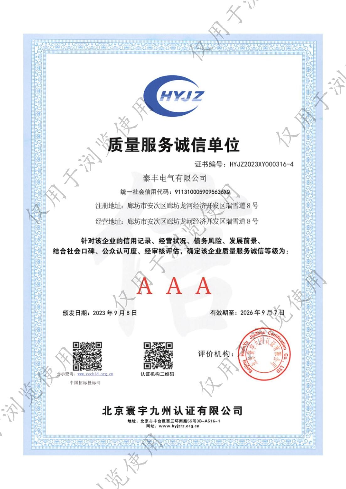 泰豐電氣有限公司-質(zhì)量服務(wù)誠信單位