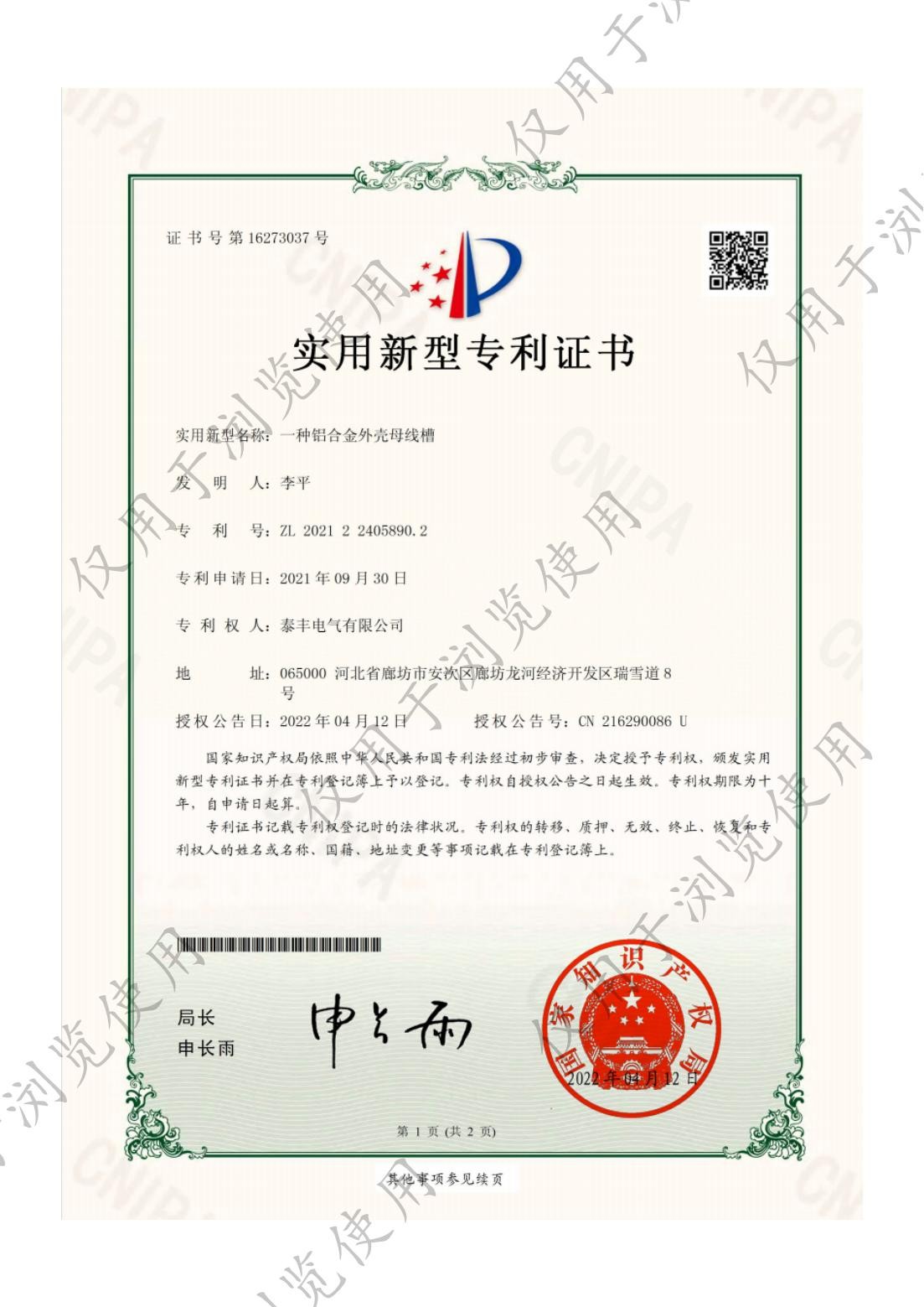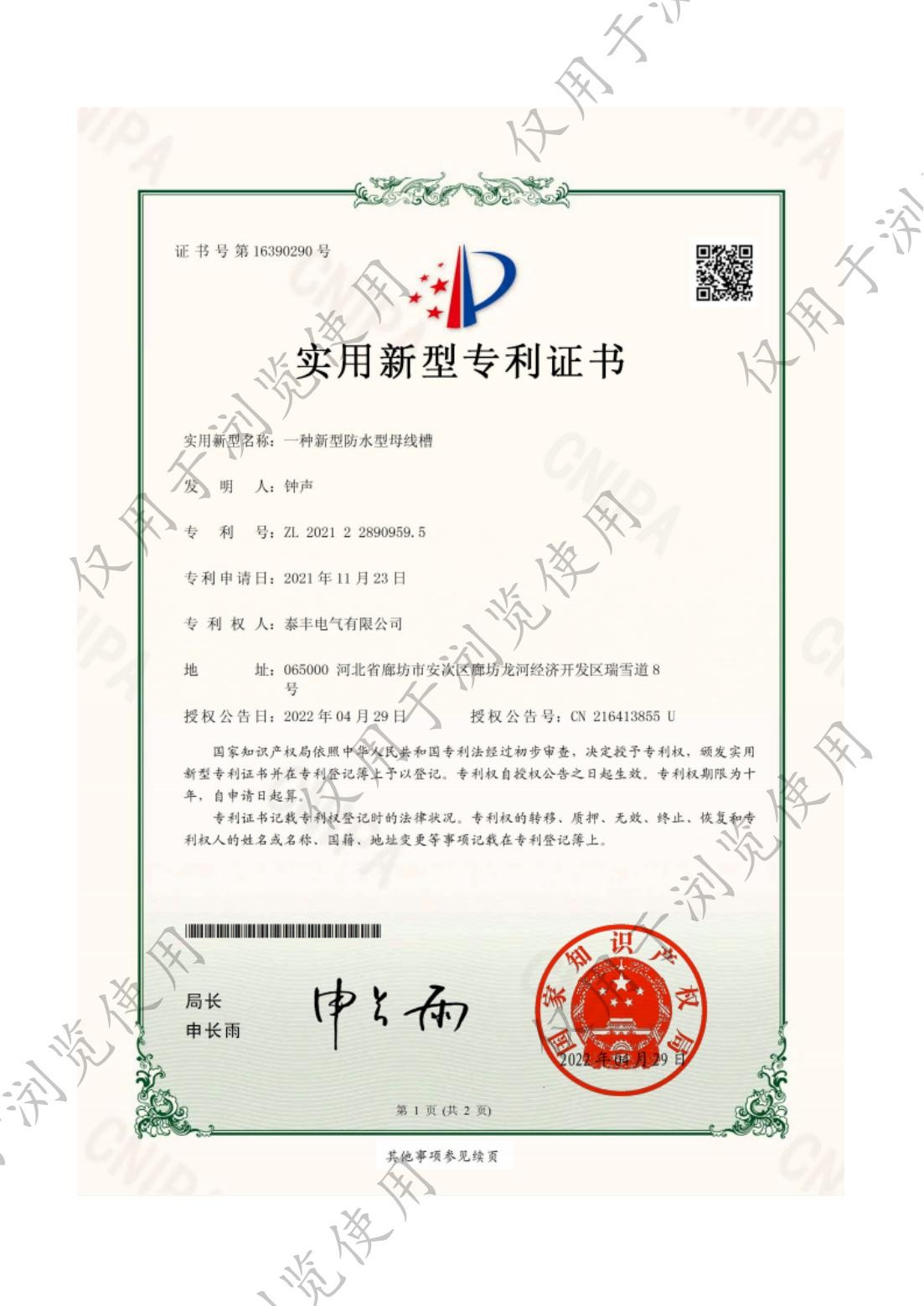 泰豐電氣有限公司-一種新型防水型母線槽