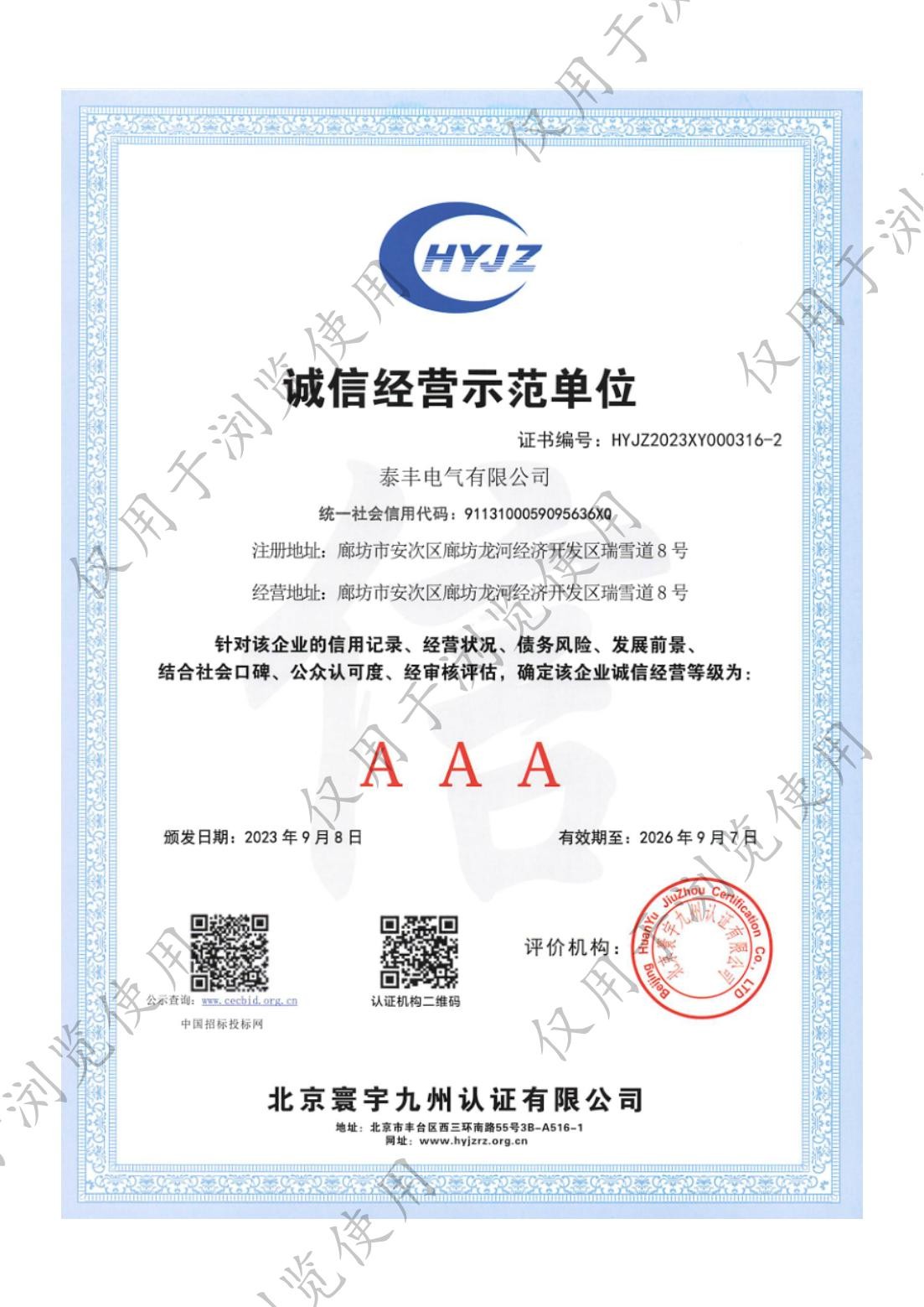 泰豐電氣有限公司-誠信經(jīng)營示范單位